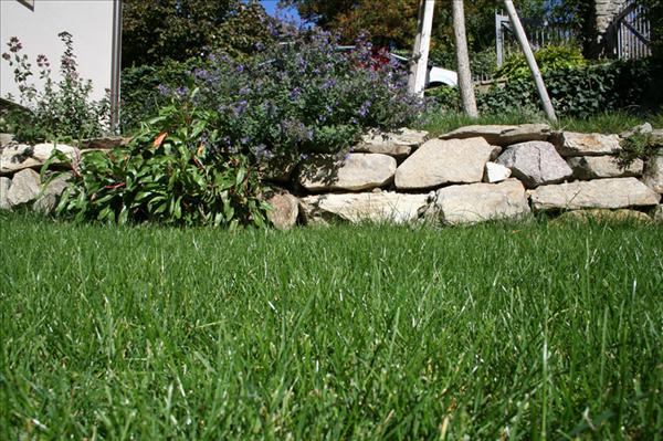 Das Geheimnis jedes schönen Rasens:Regelmäßiger Schnitt - regelmäßige Bewässerung - regelmäßige Düngung